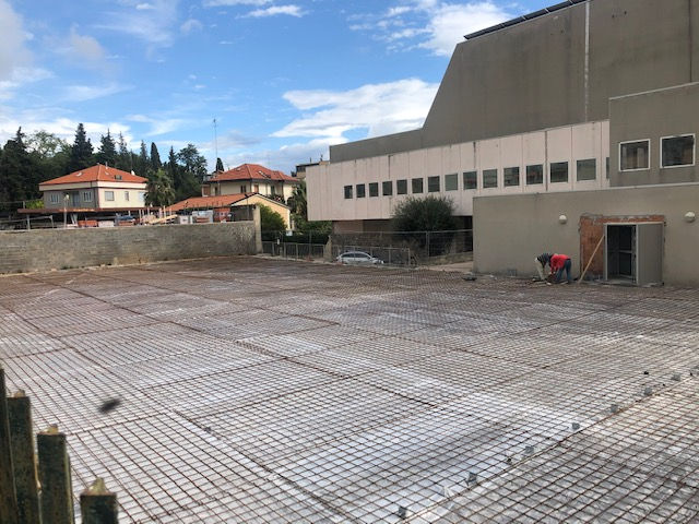 The whole work surface has been demolished and then restored with the addition of a revolving door linked to the adjoining indoor stadium.